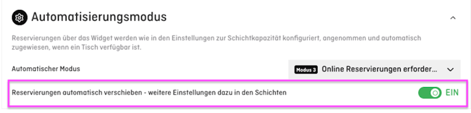 Ist diese Funktion aktiv, darf die automatische Tischzuteilung bereits platzierte Reservierungen neu anordnen, wenn sich die Situation ändert – zum Beispiel durch neue Buchungen oder Stornierungen.