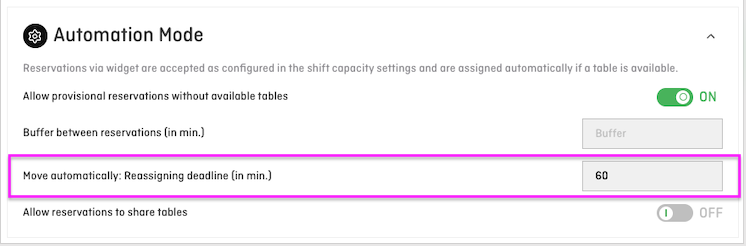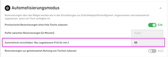 Die Frist legt fest, bis wie viele Minuten vor Beginn einer Reservierung diese noch automatisch verschoben werden darf.