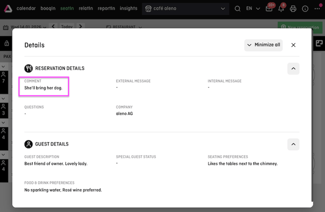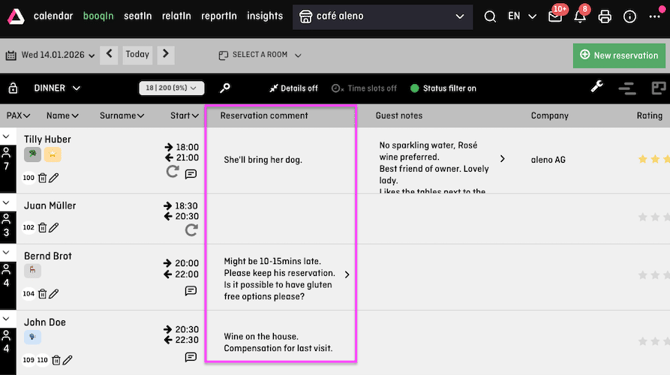 Reservierungskommentare sind im Alltag an mehreren Stellen sichtbar. Je nach Situation im Service.