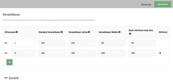 Begrenzte Verweildauer (wie lange Gäste bleiben dürfen)