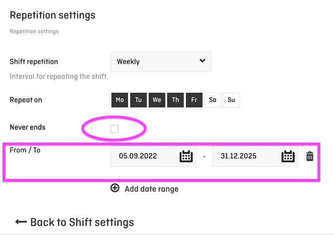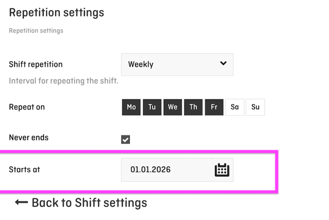 Step 2: Define the validity period of the new shift