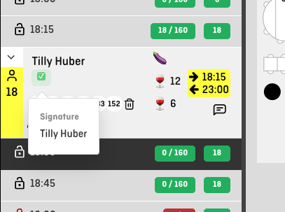 When hovering over the icon, you’ll see the guest’s full name, confirming that the reservation has been digitally signed.