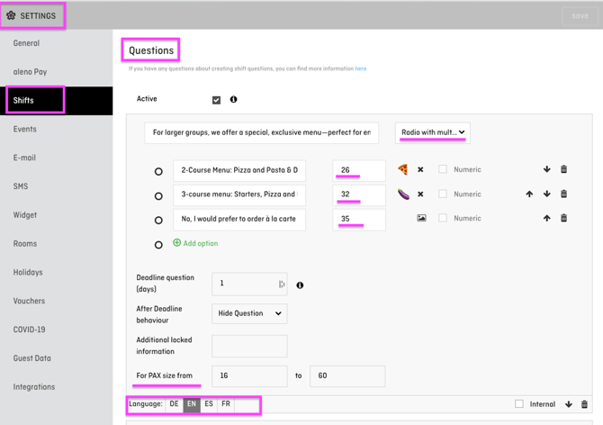 However: If you have aleno Pay active, but want to use the digital signature for specific shifts or events instead of Sell Items, you can just leave the price field empty and let guests sign their pre-ordering digitally without pre-payment.