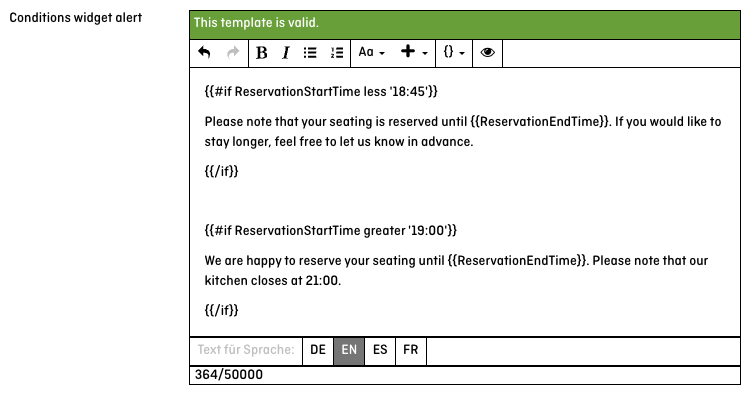 You can also use conditional text (if-conditions), so different booking times display different messages.